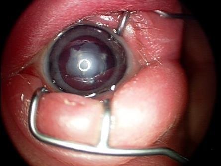 lentes de contato e estimulação visual (geralmente com oclusores/tampões) e acompanhamento frequente, pois complicações podem aparecer ao longo da vida, como o desenvolvimento de glaucoma.
